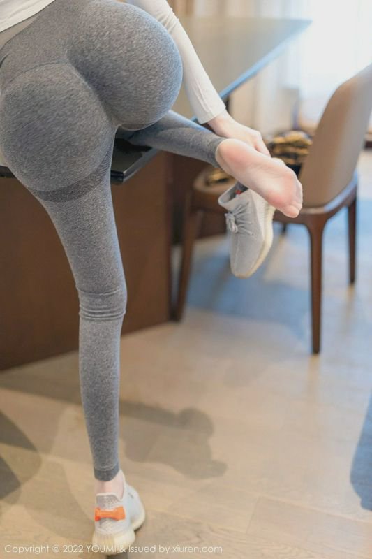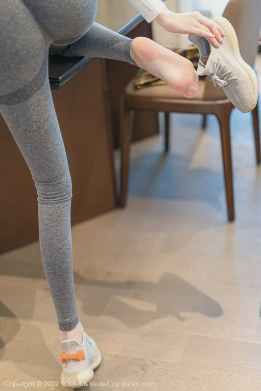 模特逗逗DOUDOU白色上衣灰色运动裤